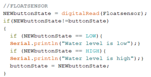 The coding used in Arduino for receiving information about water level is shown in the figure Figure 40 below.