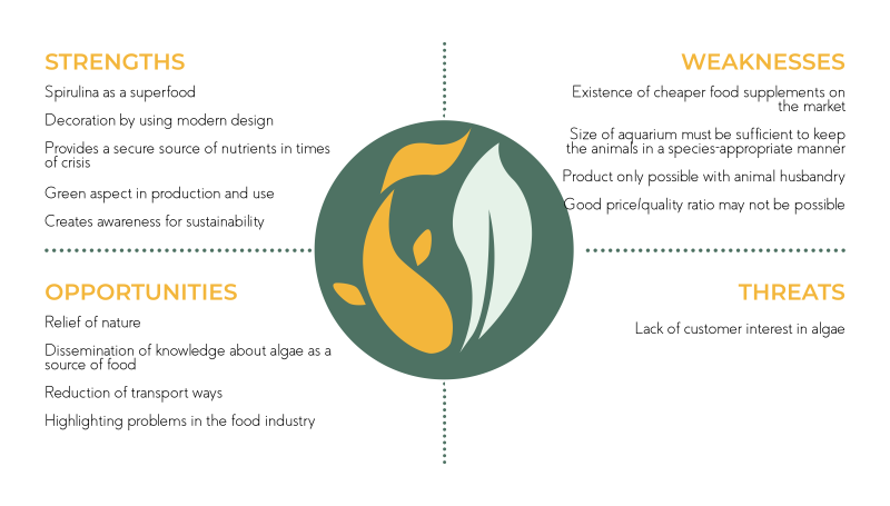 The combination of algae and fish farming is supposed to prevent the long supply chains with unknown food origins. Fish provide algae with nutrients that they need to grow. We use the algae to produce food. Algae on the other hand, filter the water so fish stay alive. Our goal is to focus on algae as a source of food and not to harm fish. Both algae and fish farms are supposed to ensure nutritional provisions as they are loaded with proteins, omega-3 fatty acids and other nutrients. Studies show that the main source of all the nutrients and omega-3 oils that help our brains to function better can come directly from algae, without including fish in this food chain [Y. Li F. Vernen M. Timmins D. K. Lim T. C. Adarme-Vega, P.M. Schenk, 2012]. Algae oils may provide a great plant-based alternative. These are the factors we want to include in our project, sustainability is one main ones.
